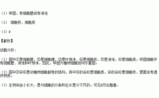 (1)植物细胞示意图是 图,你的判断依据是该细胞有 。(任写一项)