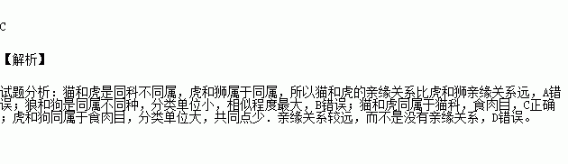 A.猫和虎的亲缘关系比虎和狮亲缘关系近