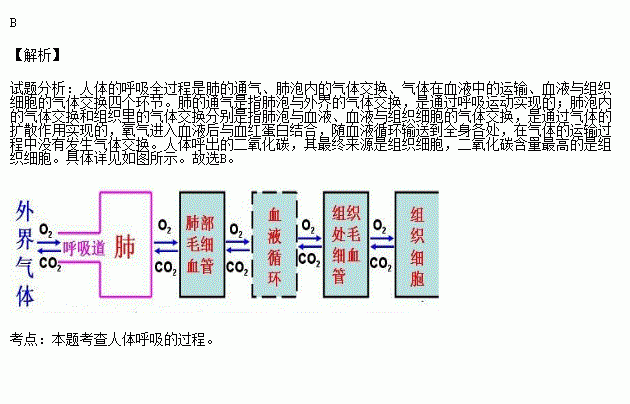 (2)B过程中,氧从__________进入_______;D过程中,组织细胞产生的二氧化碳进入__________。
