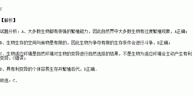 D.有利变异的个体容易生存下来并繁殖后代