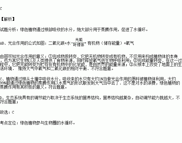 (1分)(2015•连云港)绿色植物在生物圈水循环中的作用是( )