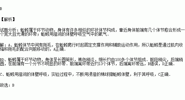 C.小刚:实验过程中,不断用浸湿的棉球擦蚯蚓体壁,利于其呼吸