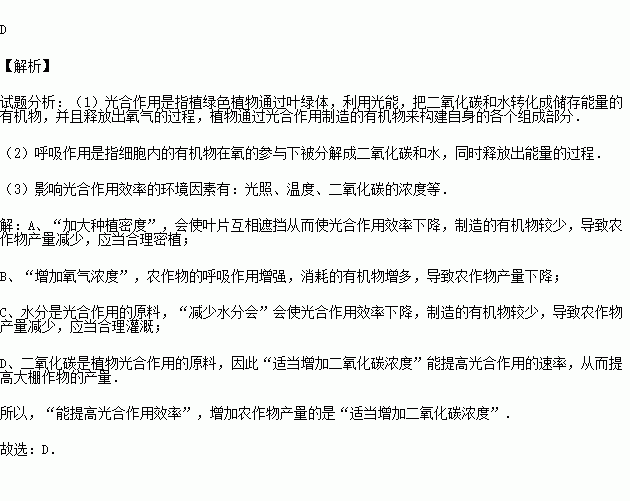 A.加大种植密度 B.增加氧气浓度