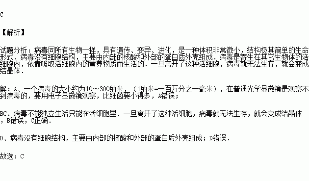 A.比细菌要大得多 B.能够独立生活