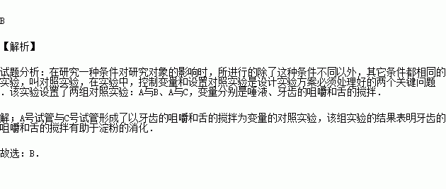 请问选取哪两组作为对照可证明牙齿的咀嚼和舌头的搅拌对淀粉有消化作用( )
