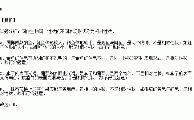 A.同样成熟的鱼,鲤鱼体形较大,鲫鱼体形较小