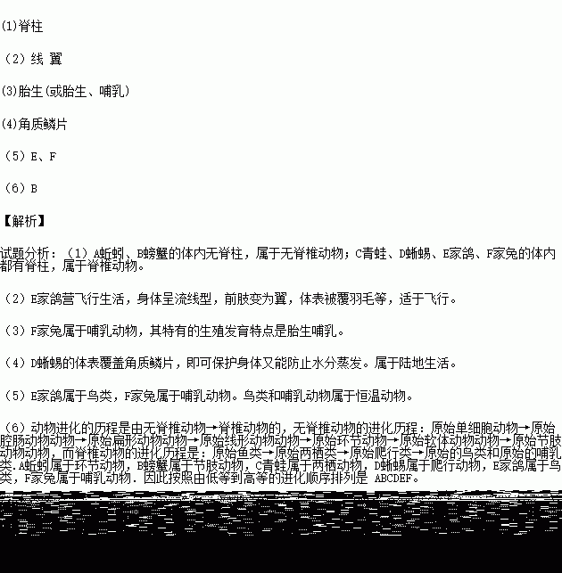 (1)A、B与C、D、E、F的主要区别是身体背部没有____ ___。