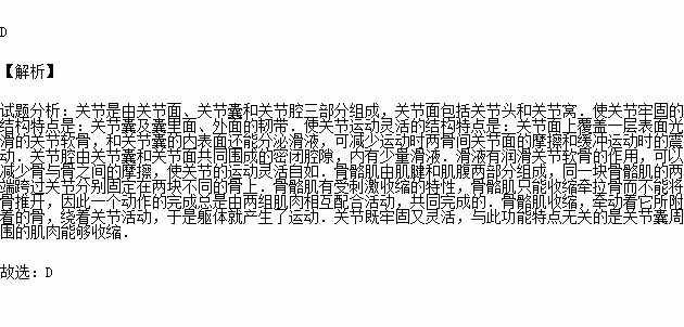 (2013秋•沙河市期末)关节既牢固又灵活,与此功能特点无关的是( )