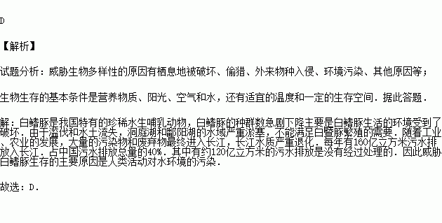 C.白鳍豚的食物来源不足 D.人类活动对水环境的污染