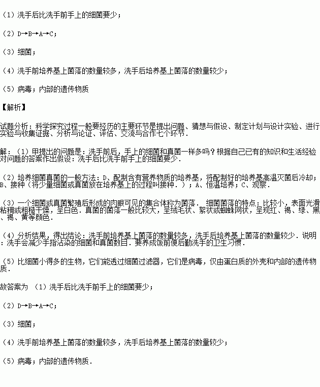 (2)请你帮他们将下面培养细菌和真菌的操作步骤进行排序: (用字母和箭头表示,)