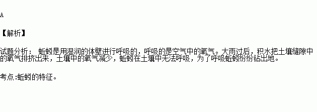 雨后,常见到地面上有一些蚯蚓,这是因为( )