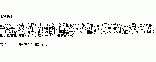 城市移栽的树木,根部通常带有一个很大的土坨,这样做的目的是( )