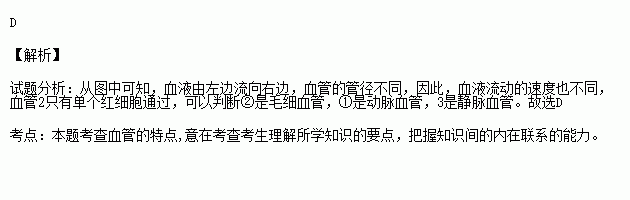 如右图所示为某同学在“观察小鱼尾鳍内血液的流动”实验中,显微镜下观察到的视野图像。下列说法正确的是()