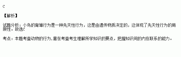 “鸟类的黑手党”——杜鹃,将自己的卵产到别的小鸟巢中,小鸟辛勤地为杜鹃孵卵并精心喂食杜鹃的雏鸟。下列对“小鸟”该种行为的解释中,正确的是( )