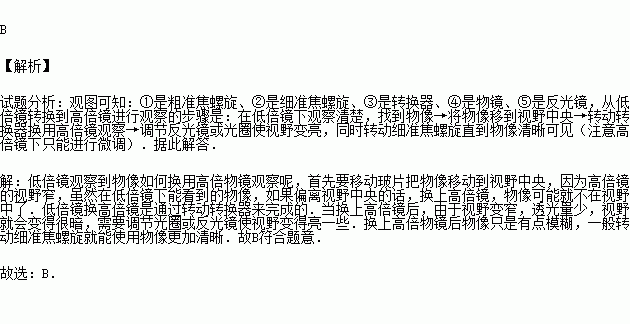 ③转动转换器④移动装片⑤调节反光镜.