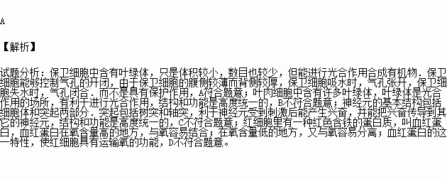 A.叶片上的保卫细胞扁平整齐利于保护内部组织
