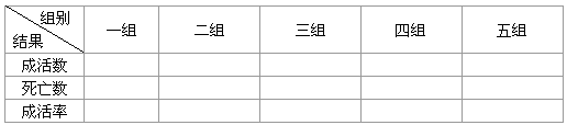 | 环境:15℃-25℃散射光照,杆插数100/组,培养时间3周(1)扦插过程中一般采取避免阳光直射、除去插条上部分叶片等措施,这样做的目的是 减少插条水分散失(或降低蒸腾作用 减少插条水分散失(或降低蒸腾作用 .(2)上述试验中,将土壤进行消毒、插条切口涂硫磺是为了 保护插条切口,防止病菌感染 保护插条切口,防止病菌感染 .(3)培养一段时间后,成活插条切口处长出的根称为 不定根 不定根 .(4)请根据上表,设计验证“某一变量对菊花扦插成活率影响”的试验步骤. (5)某同学利用上表中的变量,分组探究“影响插条成活率因素”,请帮助他设计一个表格用于记录各组实验数据. 查看答案和解析>> 科目:初中生物 来源: 题型: 以下是某生物兴趣小组在菊花扦插的最佳时期,探究“影响菊花插条成活因素”的试验结果,请根据表格内容分析回答: (1)上表中第一组和第二组 不能 不能 形成对照(填“能”或“不能”),因为不止一个变量 不止一个变量 .比较第一组和第五组,你可以得出的结论是对扦插土壤进行消毒能够提高菊花插条的成活率 对扦插土壤进行消毒能够提高菊花插条的成活率 .(2)扦插过程中一般采取避免阳光直射、除去插条上部分叶片等措施,这样做的目的是 减少水分散失 减少水分散失 .(3)该小组选择了一些菊花插条,分为A、B两组,想验证“保留叶片数目对菊花扦插成活率影响”的实验,请帮助他们设计一个用于记录实验数据的表格. 查看答案和解析>> 科目:初中生物 来源: 题型: 以下是某生物兴趣小组在菊花扦插的最佳时期,探究“影响菊花插条成活因素”的试验结果,请根据表格内容分析回答: