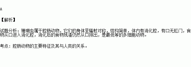 我国美丽富饶的南海诸岛,有许多是由珊瑚虫分泌物堆积而构成的珊瑚礁形成的,珊瑚虫属于腔肠动物,其显著特征是( )