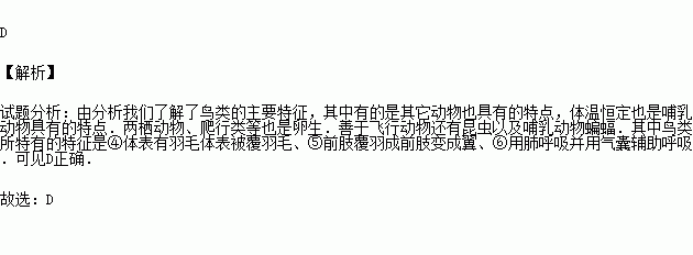 ①卵生 ②体温恒定 ③善于飞行 ④体表覆羽