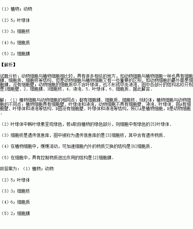 (5)在细胞中,具有控制物质进出作用的结构是[ ] .