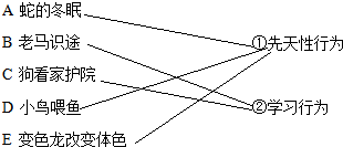 从行为获得的途径看,下列动物的行为属于哪种类型?请你连线.