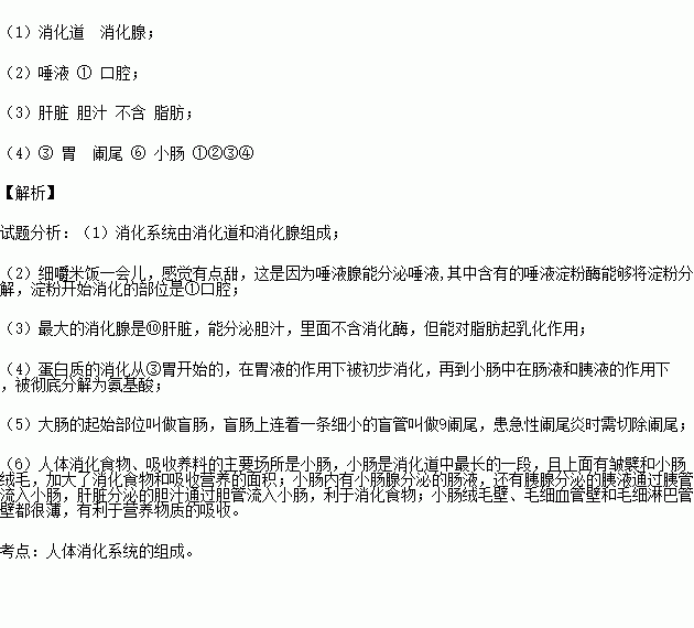 £¨2£©Ï¸½ÀÃ×·¹Ò»»á¶ù£¬¸Ð¾õÓеãÌð£¬ÕâÊÇÒòΪÍÙÒºÏÙÄÜ·ÖÃÚ_________,ÆäÖк¬ÓеÄÍÙÒºµí·ÛøÄܹ»½«µí·Û·Ö½â£¬µí·Û¿ªÊ¼Ïû»¯µÄ²¿Î»ÊÇ[ ] ¡£
