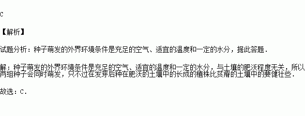 将颗粒完整饱满的种子分成甲、乙两组,在25℃左右下分别播种,甲组种在肥沃湿润的土壤中,乙组种在贫瘠湿润的土壤中,这两组种子的发芽状况是( )
