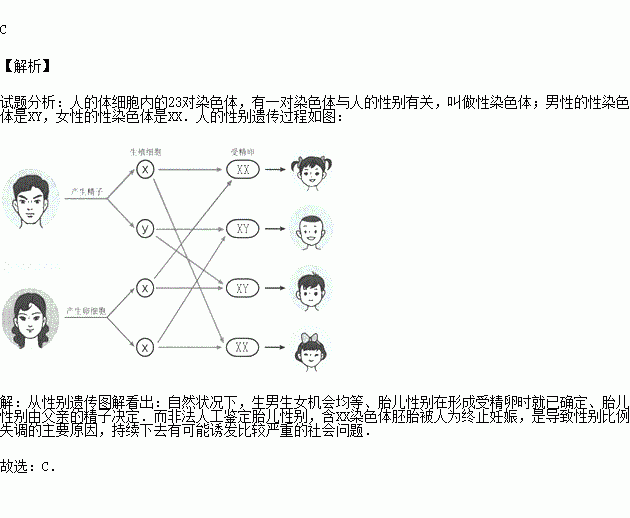 据报道,近年中国新生儿的男女性别比例是115:100,持续下去有可能诱发比较严重的社会问题.出现这种现象最可能的原因是( )