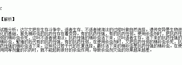 D.杀虫剂使棉铃虫的基因产生了抗药性变异