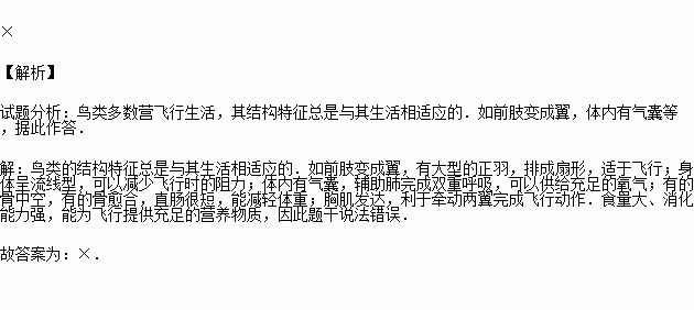 (2)鸟的呼吸器官是 ,但是鸟的呼吸方式很特别,原因是它还具有发达的 ,可以辅助呼吸.