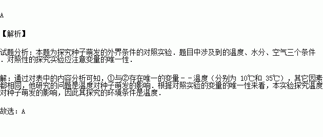 (2013•湛江)下表是小芳探究“种子萌发的环境条件”的实验情况,请判断其探究的环境条件是什么?( )