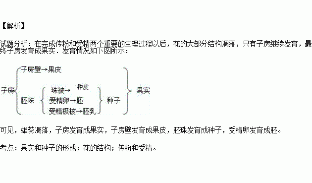 请将花到果实发育过程中,花的各部分结构发生的变化用线段连接起来。(每线1分,共5分)