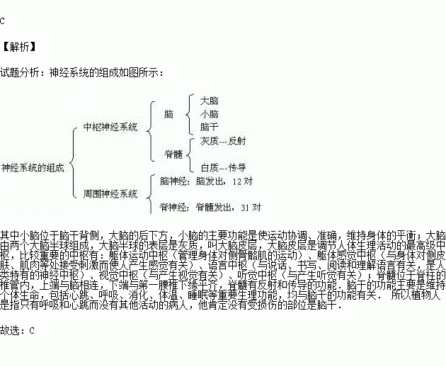 (2010•苏州)通常临床上的“植物人”是指只有呼吸和心跳而没有其他生命体征的病人.该类患者脑部一般没有受到损伤的部位是( )