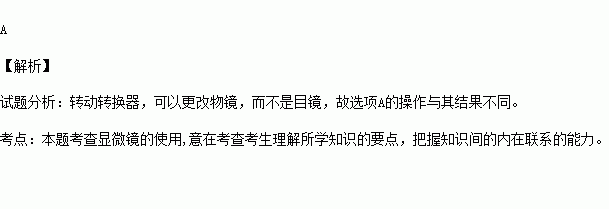 在显微镜的使用中,下列操作与其结果不相符的是( )