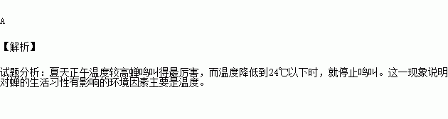 蝉在夏天正午鸣叫得最厉害,而温度降低到24℃以下时,就停止鸣叫.这一现象说明对蝉的生活习性有影响的环境因素是( )