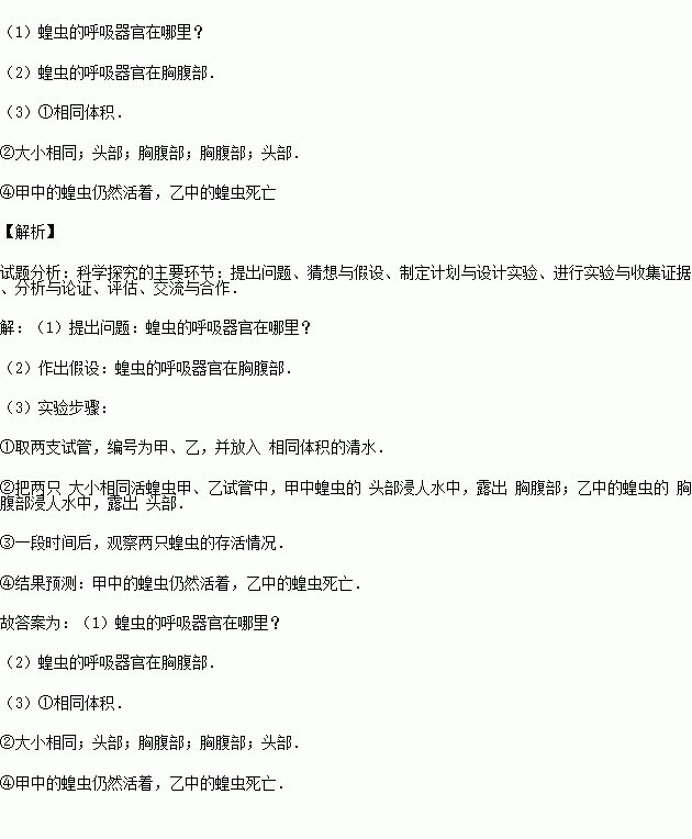 ѧϰÁ˻ȳæºôÎüºó£¬Í¬Ñ§ÃǶԻȳæµÄºôÎü²úÉúÁËŨºñµÄÐËȤ£¬²¢³öÏÖÁËÒâ¼û·ÖÆç£¬ÓÐЩͬѧÈÏΪÆäºôÎüÆ÷¹ÙÔÚÍ·²¿£¬ÓÐЩͬѧÔòÈÏΪÔÚÐØ¸¹²¿£¬¸÷Ê㼺¼û£¬»¥²»ÏàÈã®×îÖÕ¾ö¶¨Í¨¹ý̽¾¿ÊµÑéÀ´½â¾öÕâÒ»ÄÑÌ⣬ÇëÄã°ïÖúËûÃǹ²Í¬Íê³É̽¾¿£®