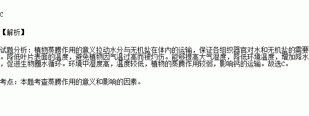 A.大气湿度高,蒸腾作用弱,影响钙的吸收