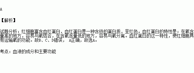 C.易与氧结合,不易与氧分离 D.不易与氧结合,易与氧分离