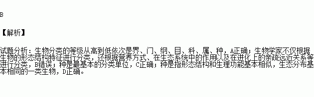 A.生物分类的等级从高到低依次是界、门、纲、目、科、属、种