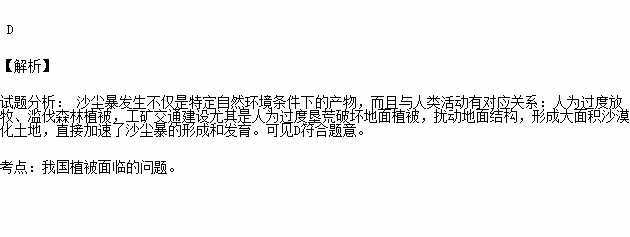 近年来我国东北、华北、华东地区持续发生多起扬沙和沙尘暴天气,造成这一现象的重要原因之一是( )
