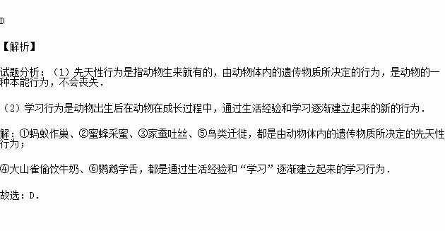 ④大山雀偷饮牛奶 ⑤鸟类迁徙 ⑥鹦鹉学舌.