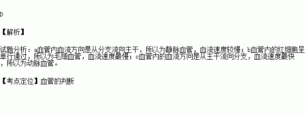 右图是某同学用显微镜观察小鱼尾鳍内血液流动时,所观察到的情况。下列说法正确的一项是