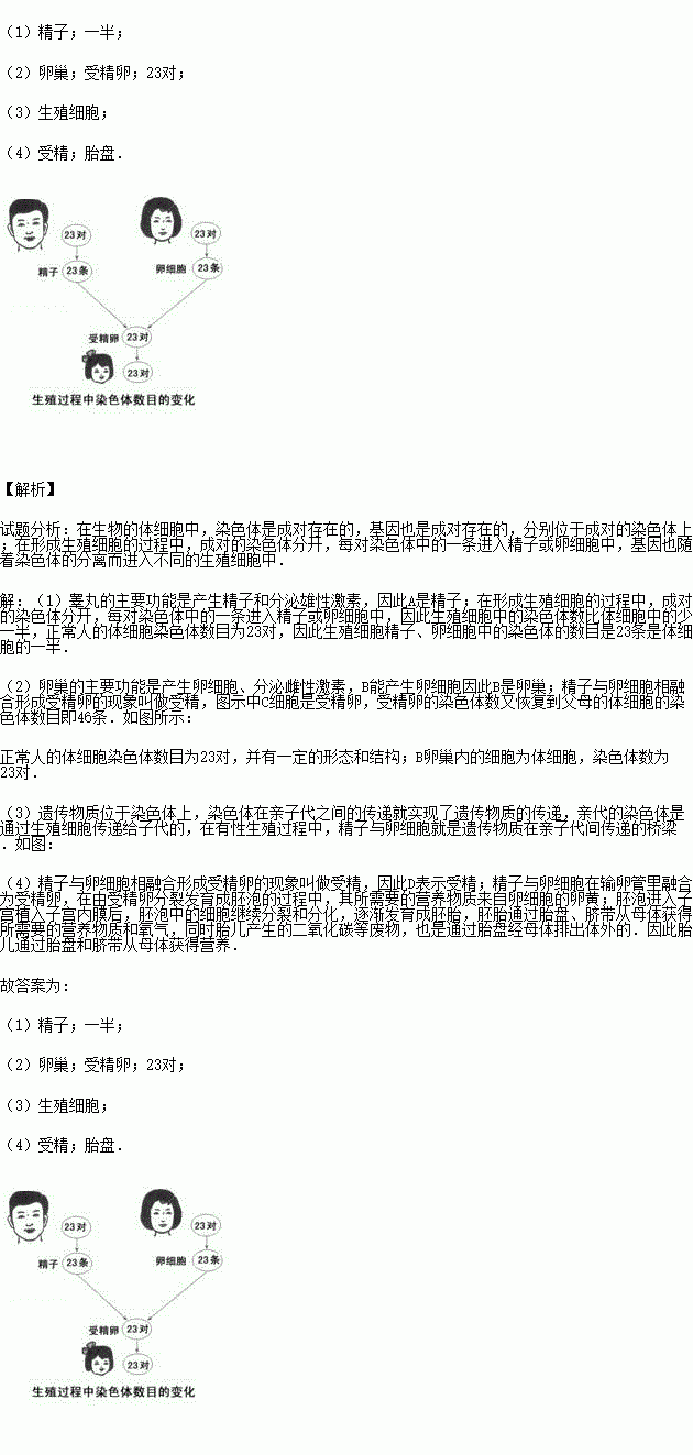 (4)D表示 过程.胎儿通过 和脐带从母体获得营养.