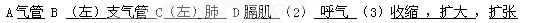 (1)A表示 状态,此时膈肌 ,肺容积变小,肺内压增大。 B表示 状态。此时膈肌 ,肺容积变大,肺内压减小。(供选填答案:吸气、呼气、收缩、舒张)