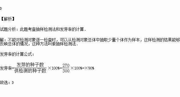 在10个小麦种子袋中选出300粒种子测定发芽率,有270粒种子在一定时间内发了芽,那么,这10袋种子的发芽率是( )