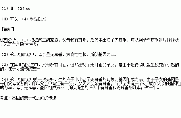 £¨3£©ÔÚµÚ¢ò×é¼ÒÍ¥ÖУ¬¸¸Ä¸¶¼Óжú´¹£¬µ«È´³öÏÖÁËÎÞ¶ú´¹µÄ×ÓÅ®£¬ÕâÖÖ±äÒìÊÇ·ñ¿ÉÒÔÒÅ´«£¿ ¡£