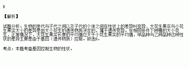 比较甲、乙花生的分布范围和平均值,我们知道,乙花生平均值大于甲花生平值,说明花生长短的性状受( )控制。