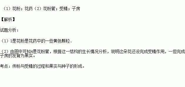 (2)图中4是 ,根据这一结构的生长情况分析,说明这朵花还没完成 作用。这一作用一经完成, 将发育成果实。