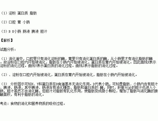 (1)图中X表示 的消化过程,Y表示 的消化过程,Z表示 的消化过程。
