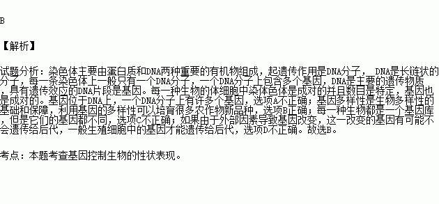 转基因食品的安全问题引起了很多人对转基因食品的关注。以下关于基因的说法,正确的是( )